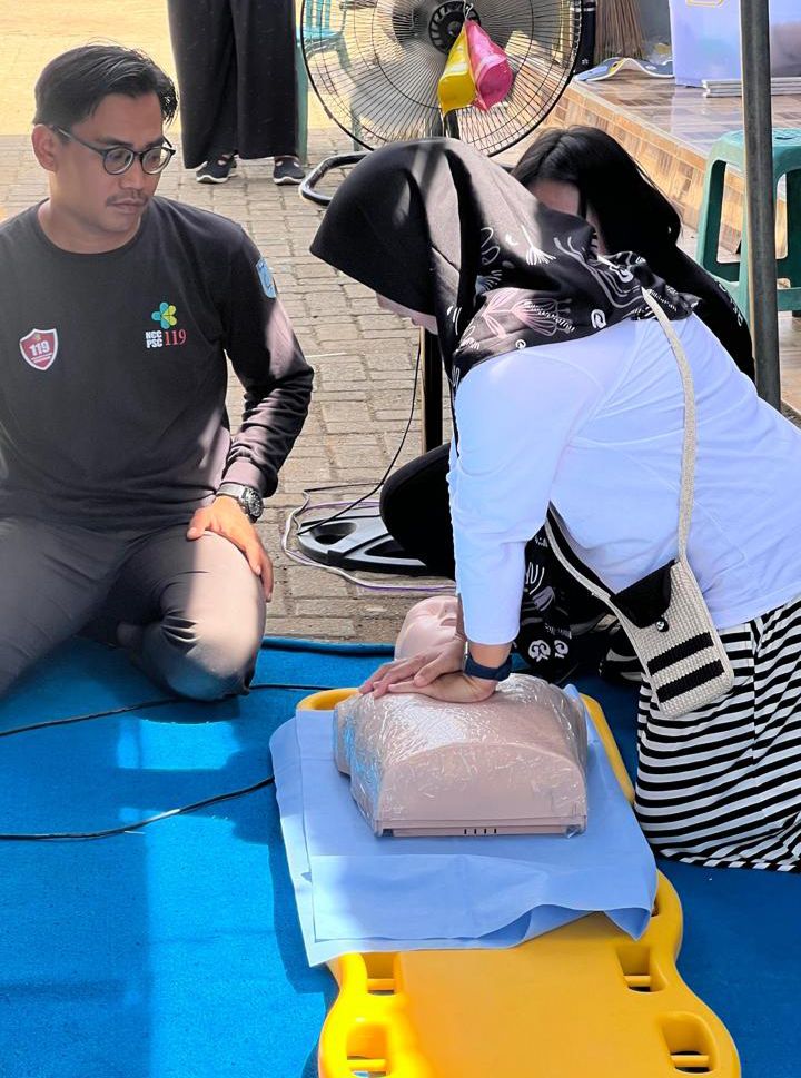 Warga juga mempraktikkan teknik balut tekan untuk menghentikan perdarahan, pembidaian sederhana pada kasus patah tulang, hingga simulasi resusitasi jantung paru dengan pendampingan intensif dari tim pemateri.